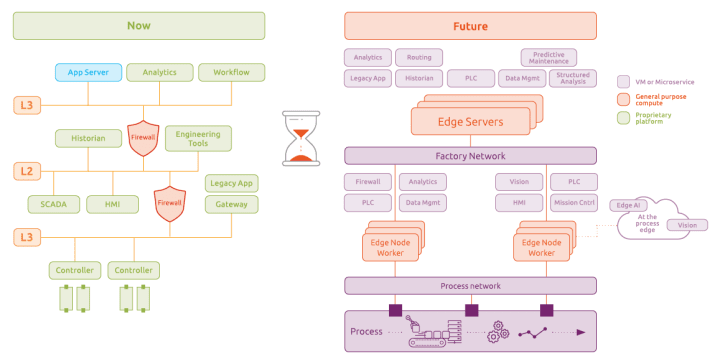 Siloed solutions and ad-hoc efforts to tap into the fourth industrial revolution by funding one-time AI/ML and digitalisation projects in manufacturing fell short of their promises. Enterprises did not address the fundamental challenges behind the lagging security, updates and maintenance in industrial hardware, but only focused on applying the latest technologies. Legacy install bases and a lack of standardisation prevented industrial transformation from occurring. To fully reap the benefits of Industry 4.0, the industrial factory has to close the gaps between Operational Technology (OT) and IT. The convergence between the two domains calls for a transition from legacy stacks with closed standards and interfaces to modern IT solutions and the embrace of open-source software.
