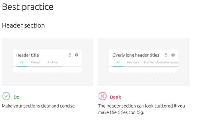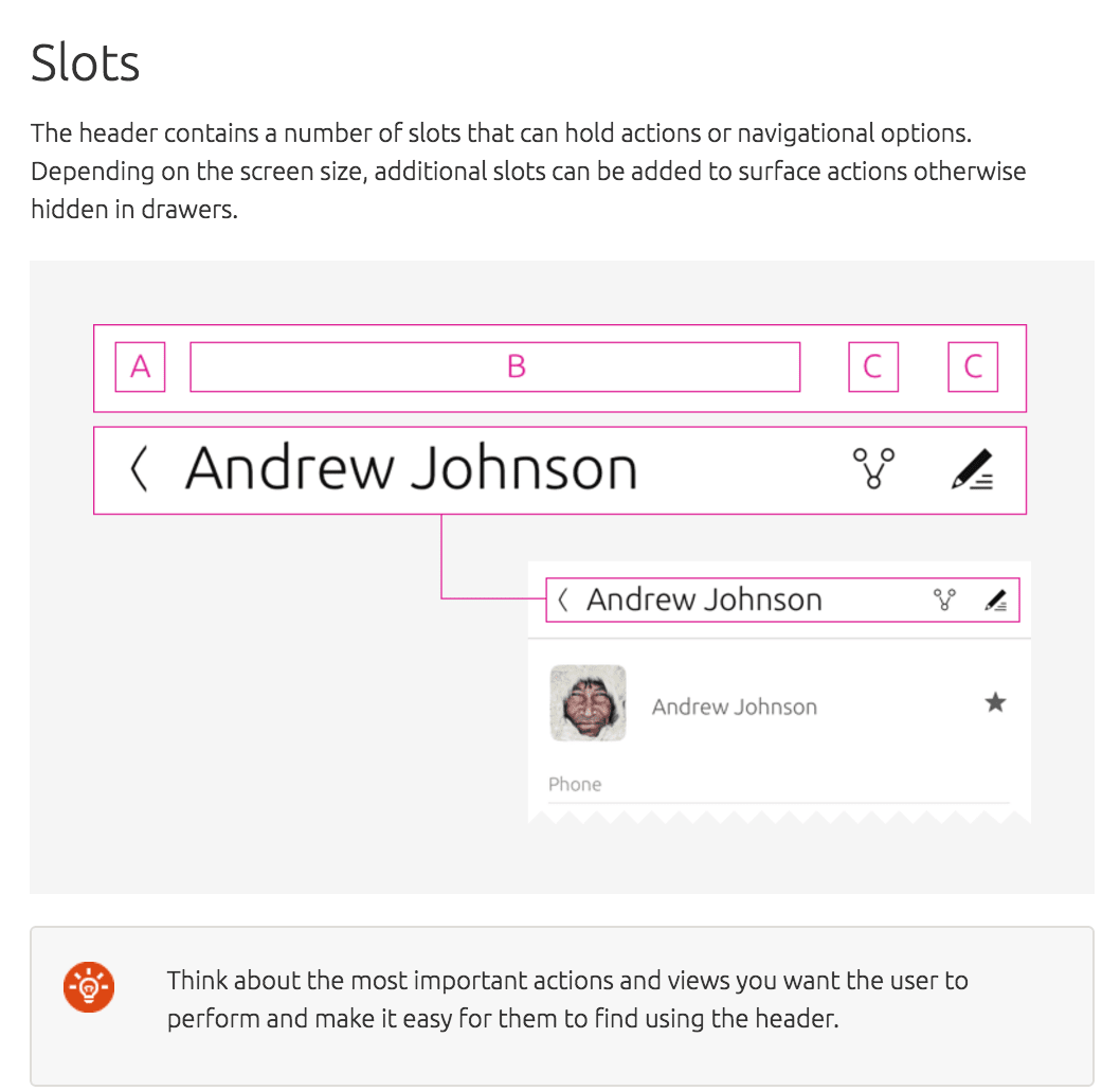 Back in November last year we took a look at defining styles for the guide e.g. how to illustrate examples of best practice. The guide will feature UI examples of how the component will look inside an app across screen sizes, as well as breaking them apart so you can see what goes where and how.
