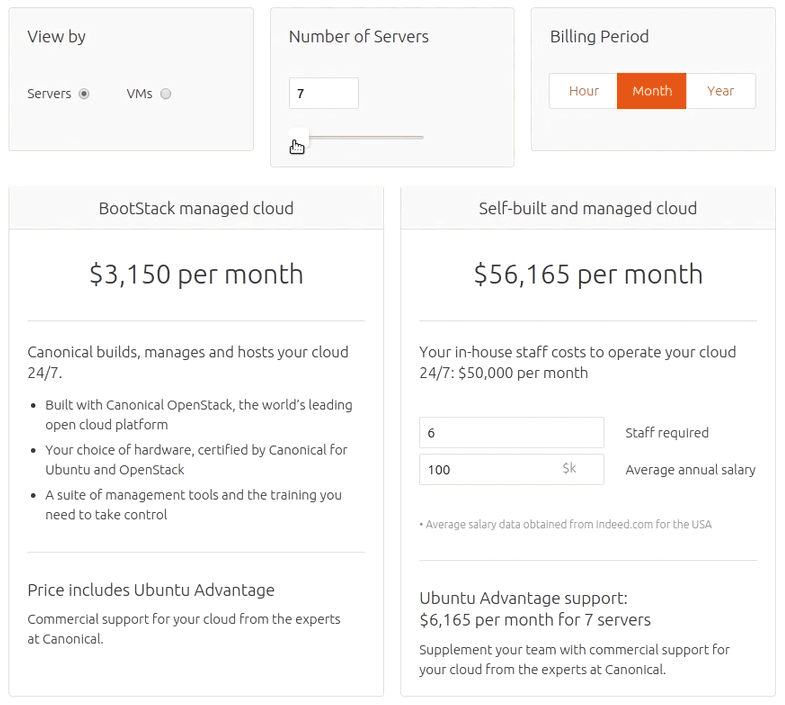 Our newly-launched BootStack Calculator helps you compare the staff costs of a self-built and self-managed cloud against the costs of a BootStack managed cloud. Calculate the potential return on investment of switching to BootStack.