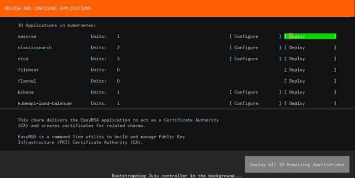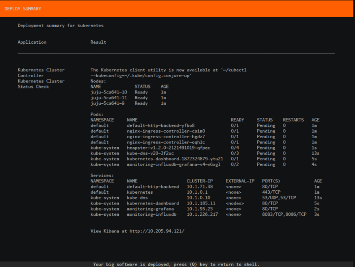 We all like pictures so the next bit will be a screenshot tour of deploying Kubernetes with conjure-up.