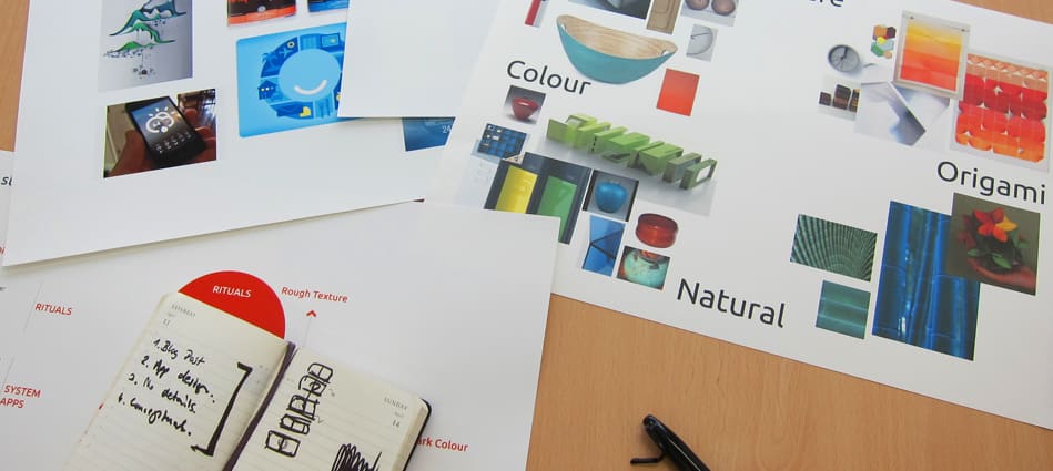 These last few weeks we have looked at developing a mood board and colour scheme for the utility apps. For example, we’ve used a combination of gradients and photo-manipulation to showcase different temperatures from locations in the weather app. We have started now to think how this gradient could influence the look of the other apps; maintaining individual styles but feeling still within a family of apps defined “rituals” metaphor.