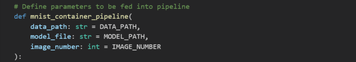The final print_prediction component is defined somewhat differently. Here we define a container to be used and add arguments to be executed at runtime.