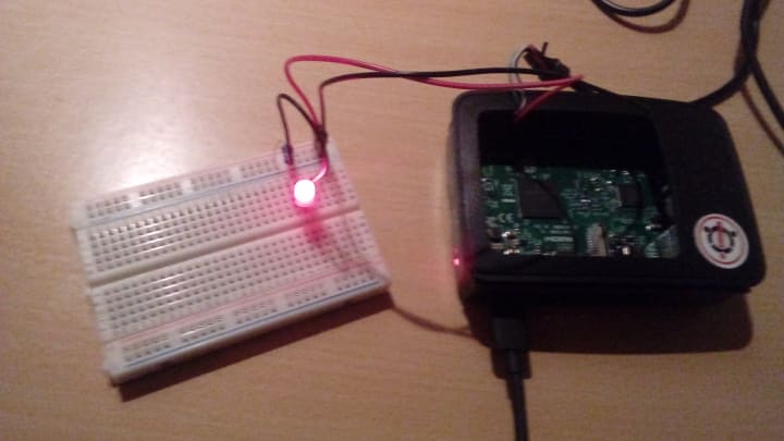 In there you will see some of the Gobot concepts. There's an adaptor for the board, a driver for the specific device (in this case the LED), and a robot to control everything. In this program, there are only two things specific to the Raspberry Pi: the adaptor and the name of the GPIO pin ("7"