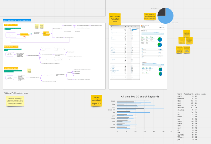 This week we added a little sprinkles on top of our research and tried to look into our quantitative data. Our data suggests that the highest searched keywords are “DHCP”, “DNS”, “PODs”, “Windows”, and “API”. Whereas our most visited pages are “install”, “how it works”, “dhcp”, and “troubleshooting”.