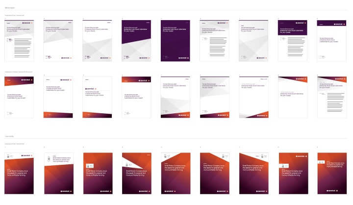 We progressed our document hierarchy work by applying our initial investigations into design prototypes, experimenting with the amount of branding applied to different documents.
