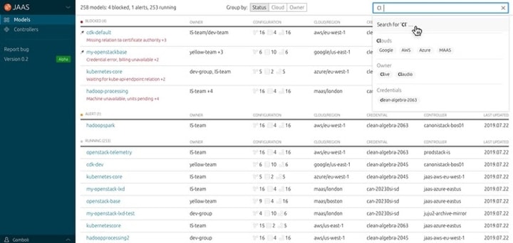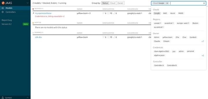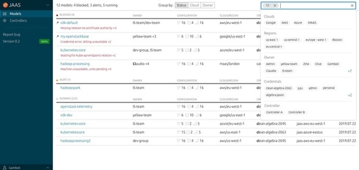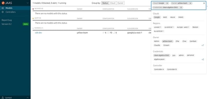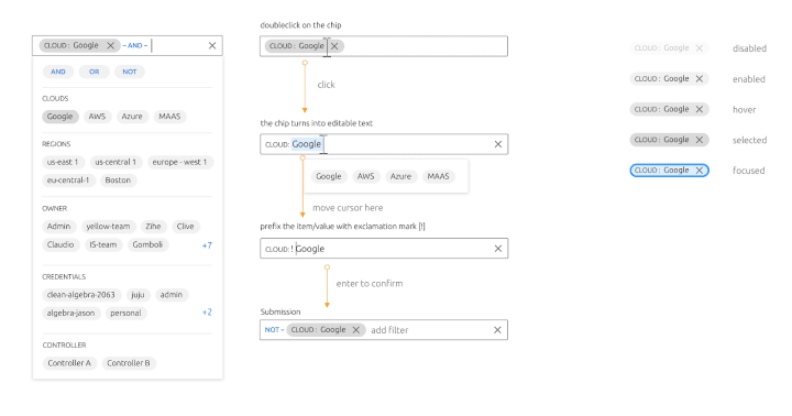 In this cycle, our team is implementing the Combo Search and filter pattern on the Juju Dashboard, where both search and filtering functions could be performed on one bar. The user can pick the filter chips from a menu, or type and submit direct keywords to query the table data.