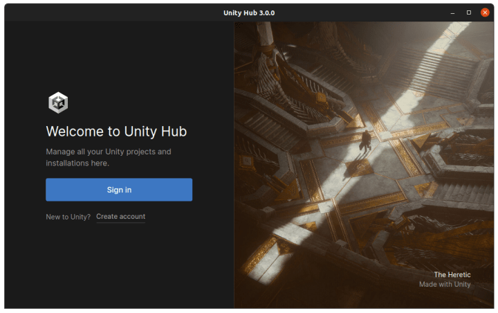 To get started with Unity you’ll need to make an account. Don’t worry though, Unity is free for personal use (and offers even more free features for students). Click Sign in to progress once you have one.