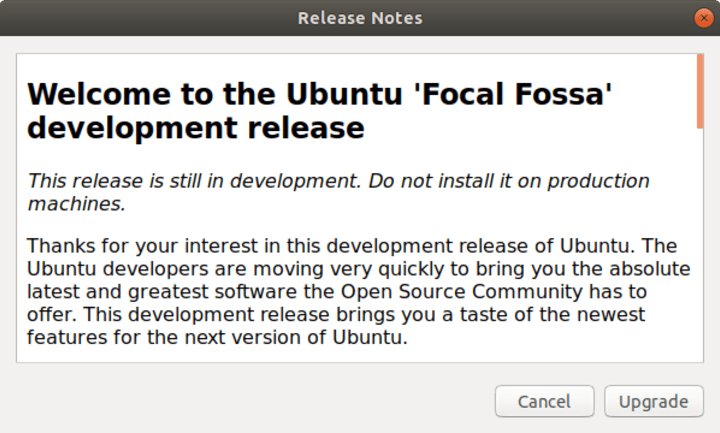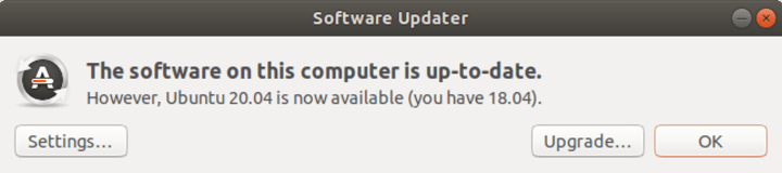 - The upgrade process can be done using the Ubuntu update manager or on the command line. The Ubuntu update manager will start showing a prompt for an upgrade to 20.04 once the first dot release of Ubuntu 20.04 LTS (i.e. 20.04.1) is released. The typical timeframe for this is around three months after the official release.
