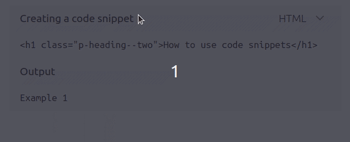 A key feature of the design was the ability to switch between different code examples within a single code snippet instance. Our first thought was to take advantage of the contextual menu pattern already present in Vanilla, but in practice, we found that it wasn’t as suitable as we’d first thought and, in particular, wasn’t accessible. We opted instead for a simple select element, with a small amount of JavaScript to handle toggling between visible code examples.