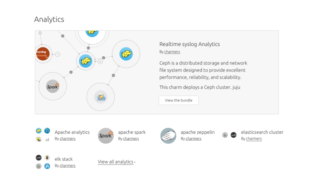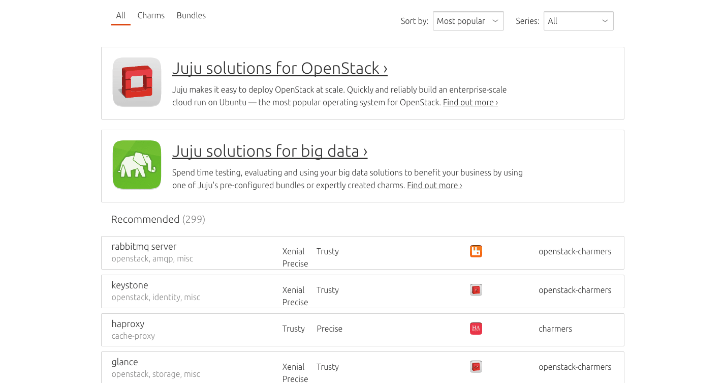 The new Juju Charm store allows you to explore the growing ecosystem of over 300 charms and bundles – everything you need to build your app.