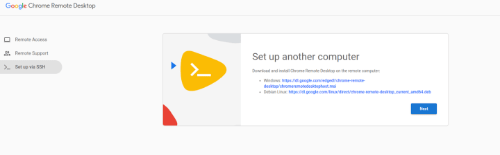 2. On your local computer, using the Chrome browser, go to the Chrome Remote Desktop command line setup page: