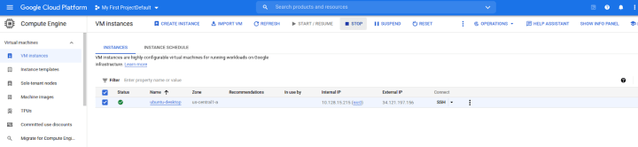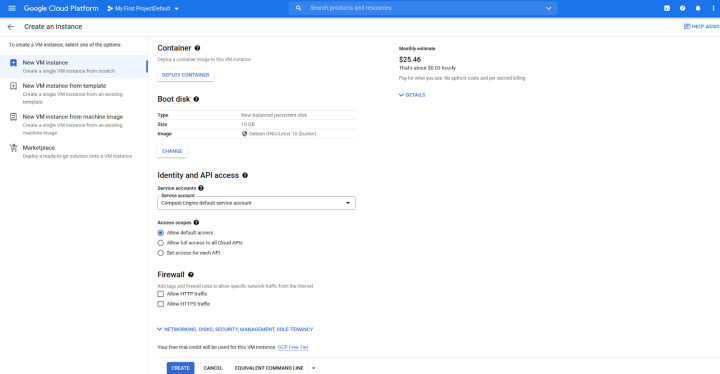 - Make sure that you selected a Google Cloud project for running this VM instance.