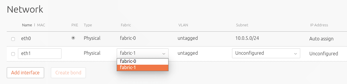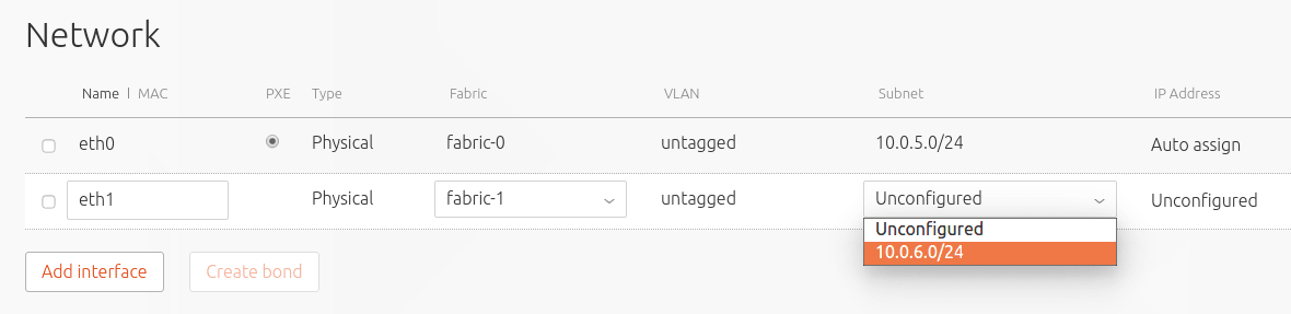 - Nodes with two NICs should have both of them connected to the subnet. One of the NICs should have the “IP address” field set to “Auto assign” and the other to “Unconfigured”.
