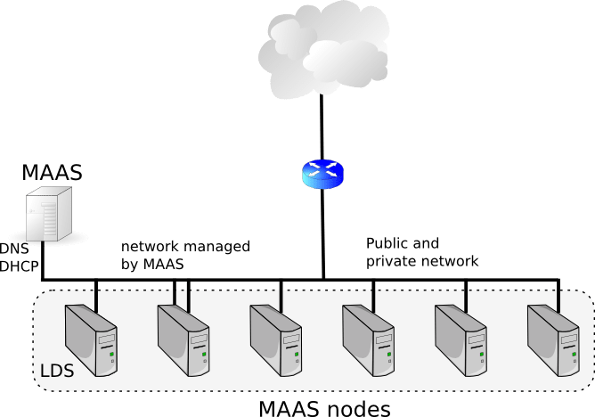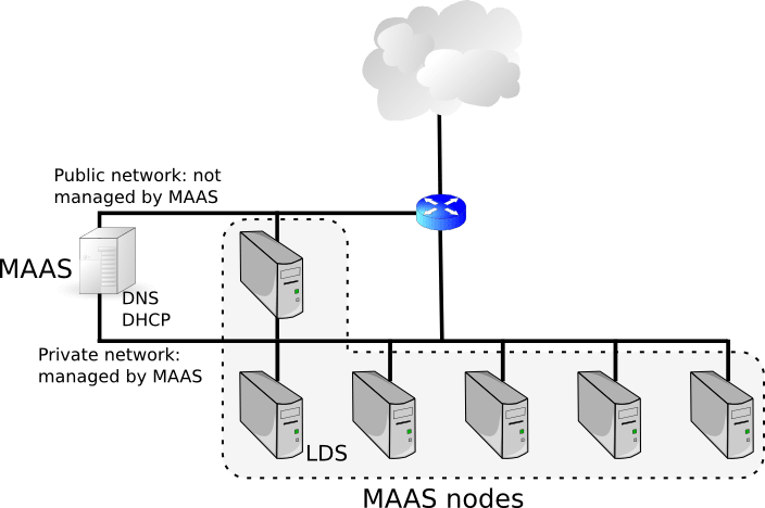 There are two basic network layouts that we support. Let’s call them “flat network” and “split network”. In both of these models, at least one node needs to have two network interfaces connected to networks that MAAS knows about. We’ll call them private and public networks.