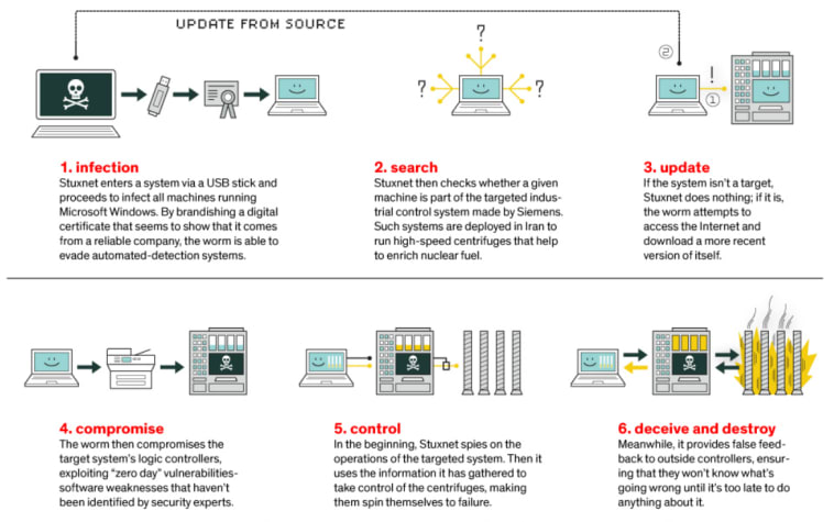 No internet, no problem. History has shown us that vulnerabilities can always be exploited. Image taken from The Real Story of Stuxnet.