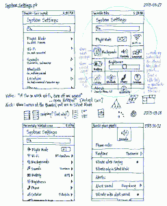 Next, I sketched out nine possible layouts for the overview screen — the first thing people would see when they entered System Settings.