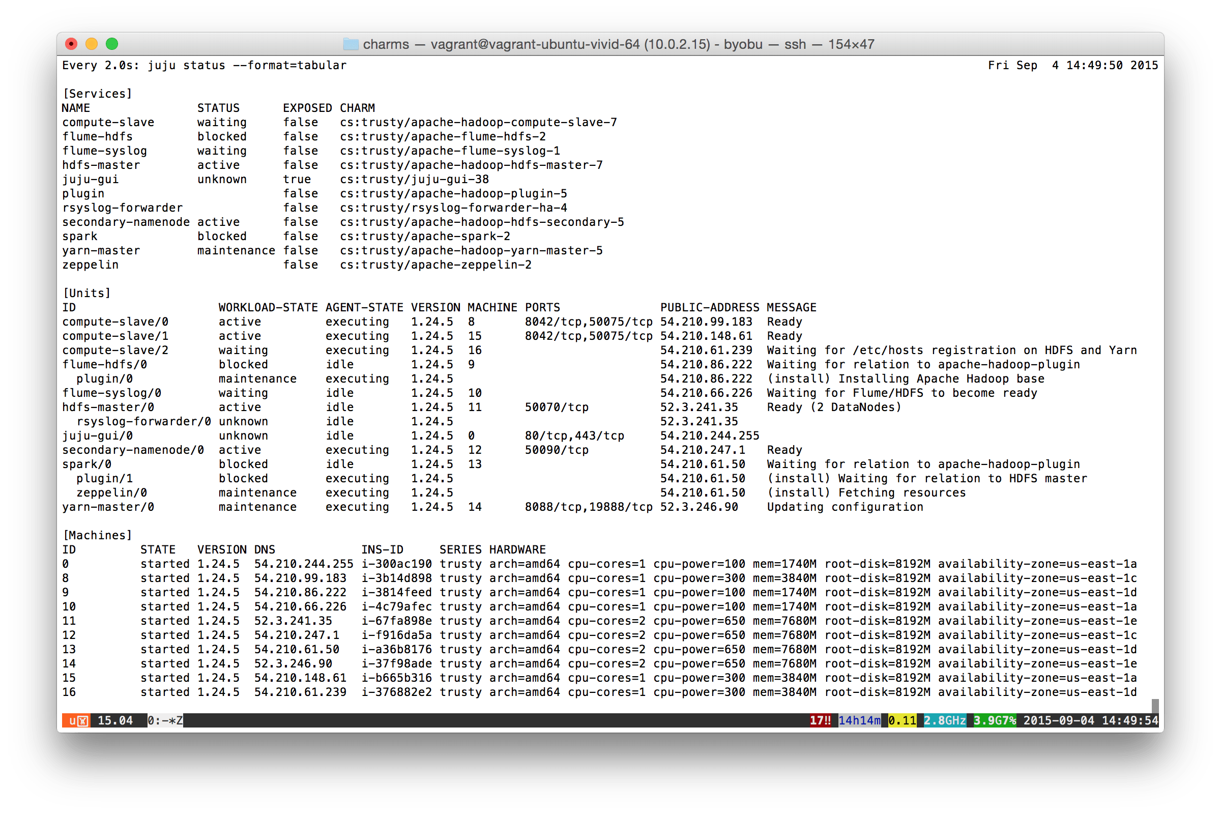 You’ll see something similar to the following. Note the MESSAGE column in the middle-right, which describes what each charm in the bundle is doing: