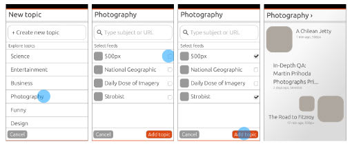 Adding a new topic with feed suggestions makes finding things to read much easier for users who don’t understand RSS. However, suggesting feeds for subjects could easily become quite complex; for example feeds related to ‘News’ are location specific. Whether we can suggest feeds for users will depend on if we can automate this process.