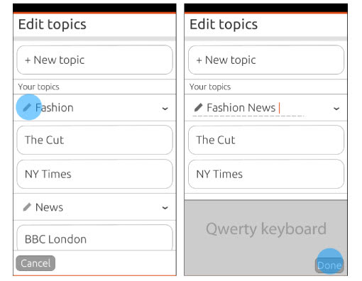 In Shorts, feeds are organised under topics. Occasionally, users might want to change the names of their topics and the organisation of their feeds. Under ‘edit topics’, users can: