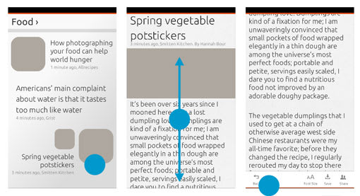 Something we all know (from a healthy bit of stalking field research on public transport) is that reading on a phone means you are probably doing something else at the same time. You are waiting for your friends in a restaurant, or on a busy train on your way to work. You open the reader app to quickly check some news.