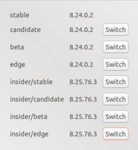 Alternatively if using GNOME Software, select the ‘stable’ channel in the store page for Skype, and select a channel to switch to.