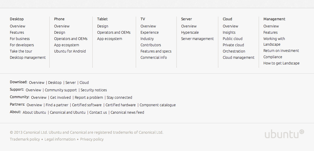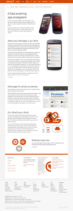 By focusing our site navigation on the products themselves, we aim to make it clear for someone who is new to the site that Ubuntu is about all of these things: PCs, phones, tablets — you name it.