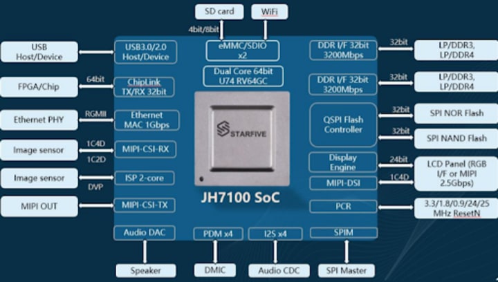 Designed for AI/ML workloads, the StarFive JH7100 is featured in the VisionFive V1 SBC, touted as the world’s first-gen of affordable RISC-V boards running Linux.