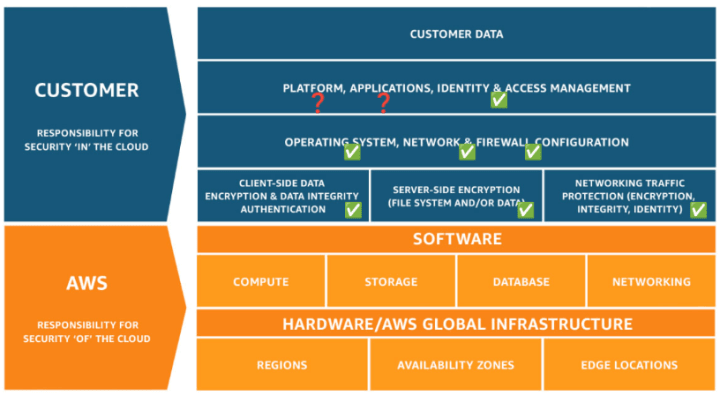 While the cloud providers ensure the security of their infrastructure and platforms, it is the responsibility of the customer to secure what runs on it. AWS offers various tools to assist in securing and monitoring your security environment, however, when it comes to the application realm, the onus is on you as the customer.