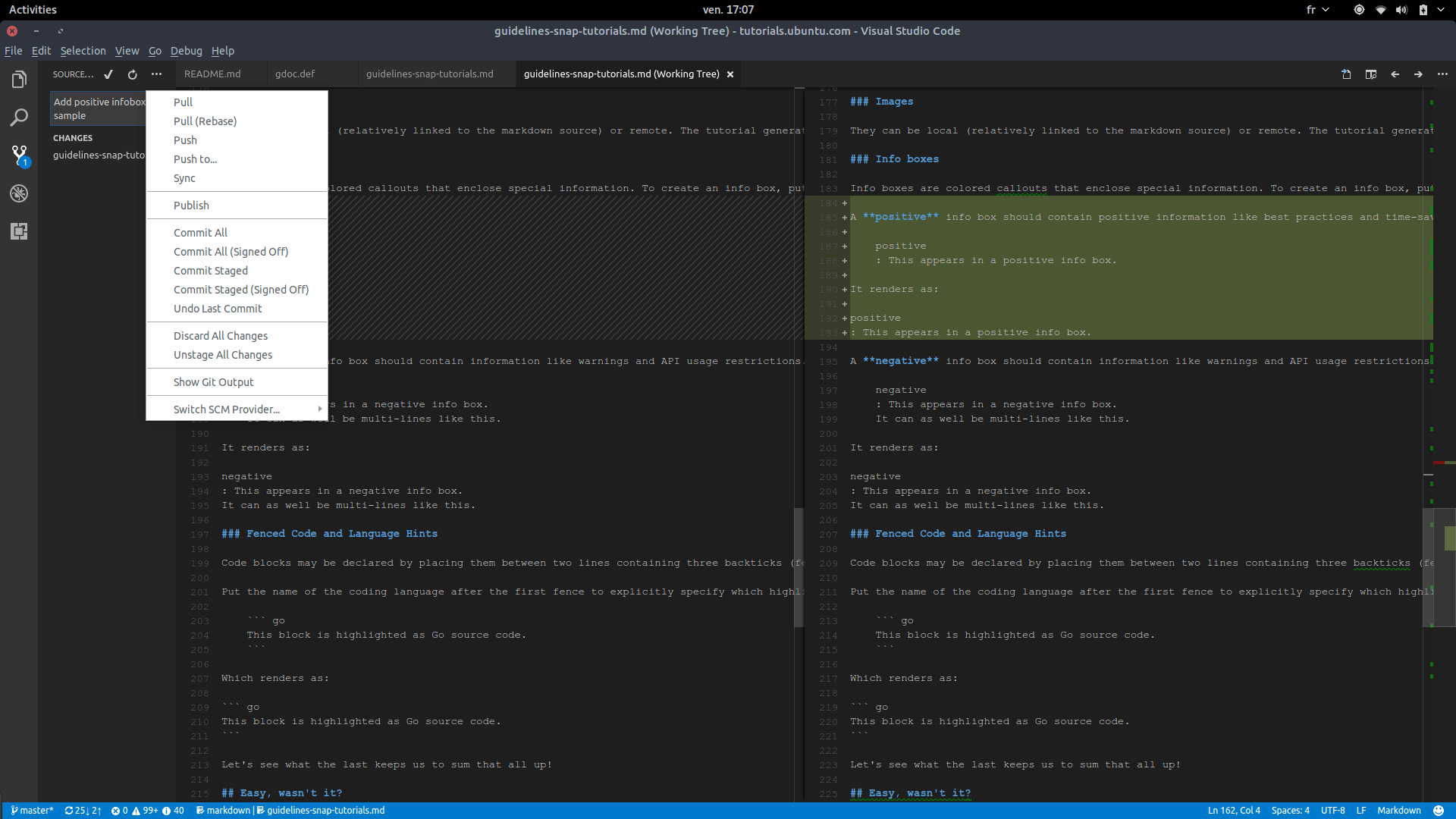 - git built-in support with an approachable user interface for git commands