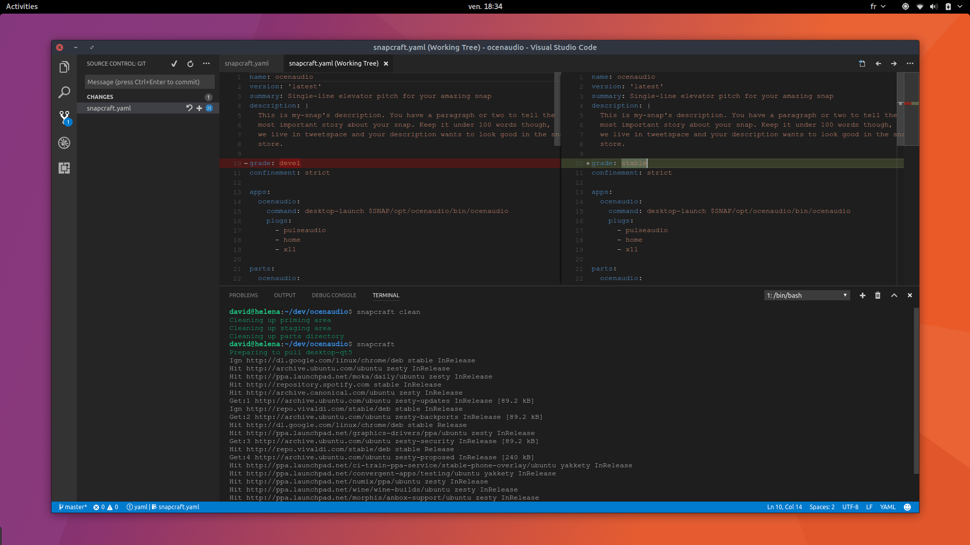 This snap makes the latest version of Visual Studio Code easily installable and auto-updatable on Ubuntu 14.04, 16.04 and newer supported releases, goodbye 3rd party PPAs and general package hunting!